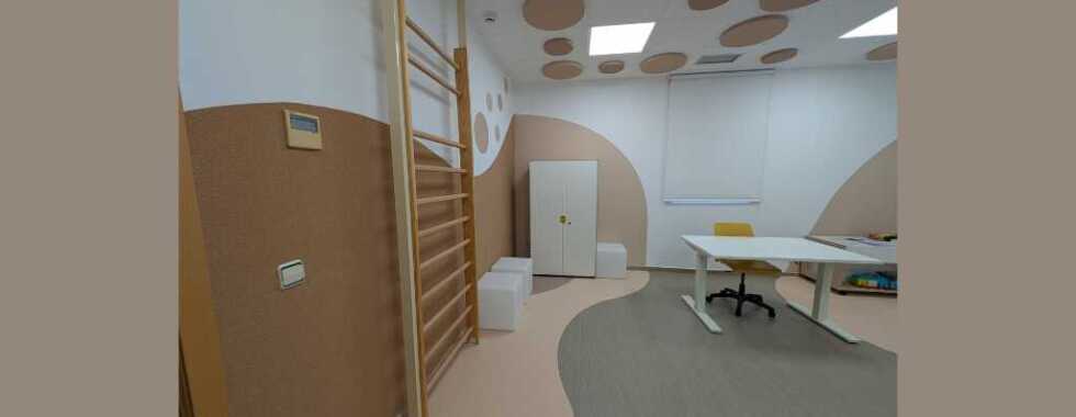 También se ha incorporado mobiliario versátil y móvil, que permite adaptar cada sesión a las necesidades específicas de cada niño o niña, material sensorial, y mesas regulables y otros elementos ergonómicos que facilitan la intervención y la comodidad durante las actividades.