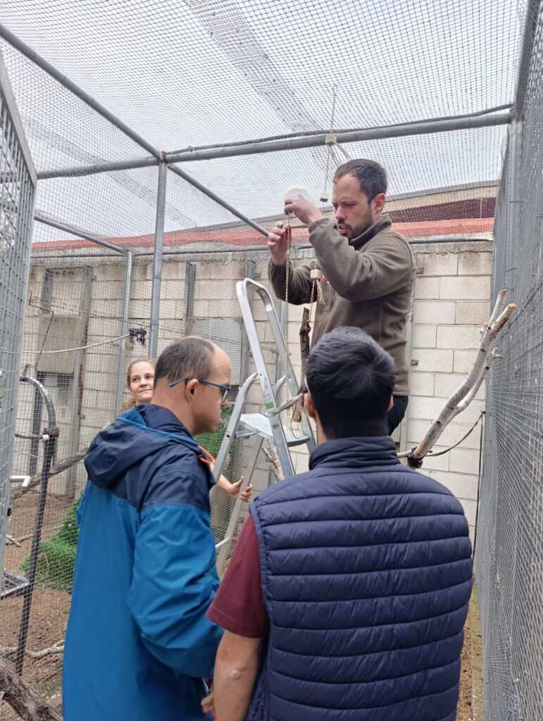 Los participantes han elaborado con sus propias manos columpios, escaleras y un puente de madera, pensados para las jaulas donde conviven loros, cotorras y otras especies que se encuentran en proceso de rehabilitación. Estos elementos no solo aportan entretenimiento, sino que también favorecen el bienestar físico y emocional de las aves durante su estancia en el centro.