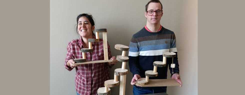 El taller de artesanía y merchandising del Centro Ocupacional de Down Madrid, a través del proyecto “Talento en madera”, impulsado por Down Madrid en colaboración con la Fundación GMP, ha dado un paso más en su compromiso con la sostenibilidad y el cuidado del medio ambiente. En colaboración con el taller de jardinería, hemos visitado el Centro de Recuperación de Animales Silvestres (CRAS) Madrid-Viñuelas para entregar una serie de juguetes diseñados especialmente para enriquecer la vida de las aves que allí se recuperan.