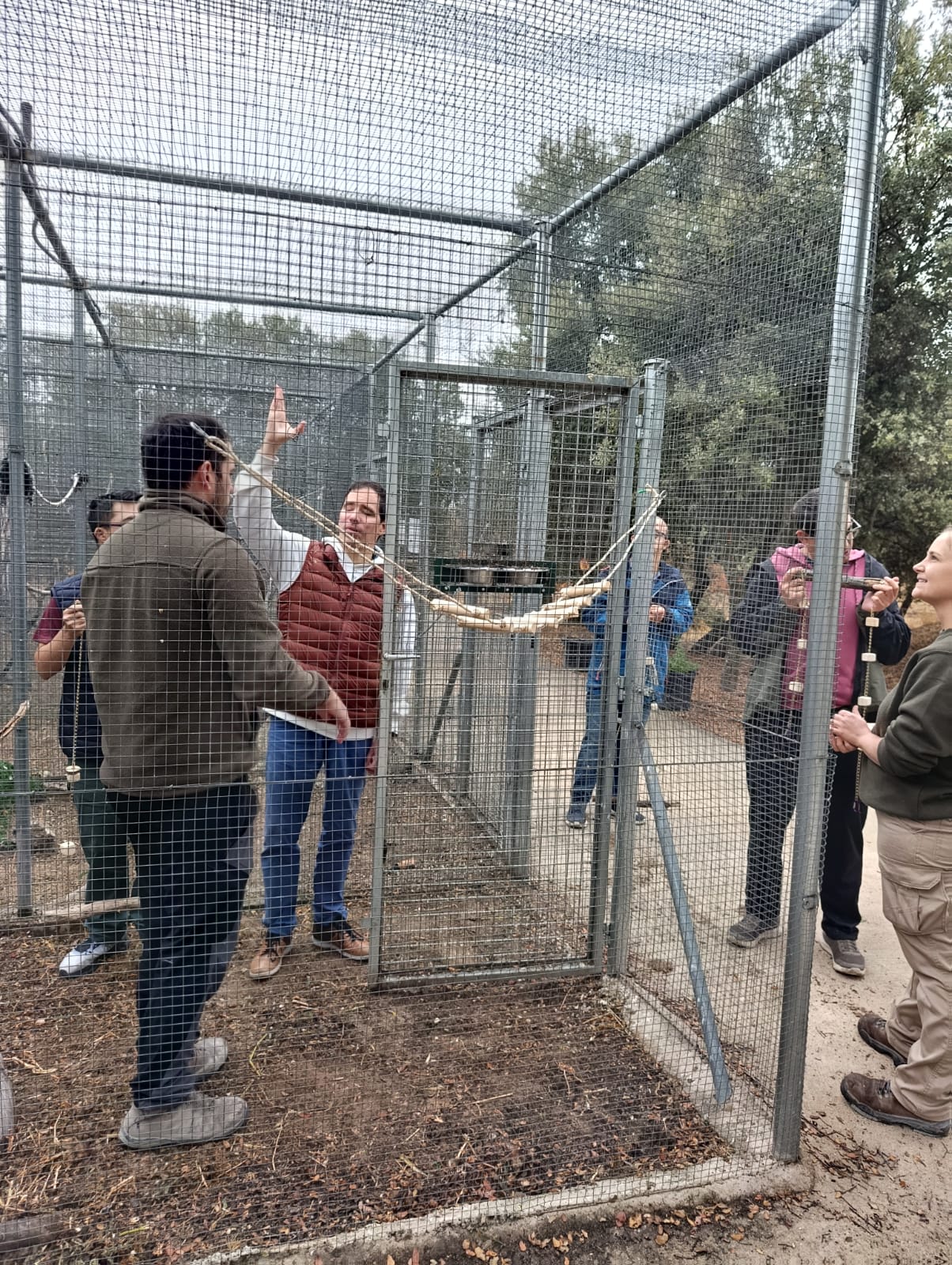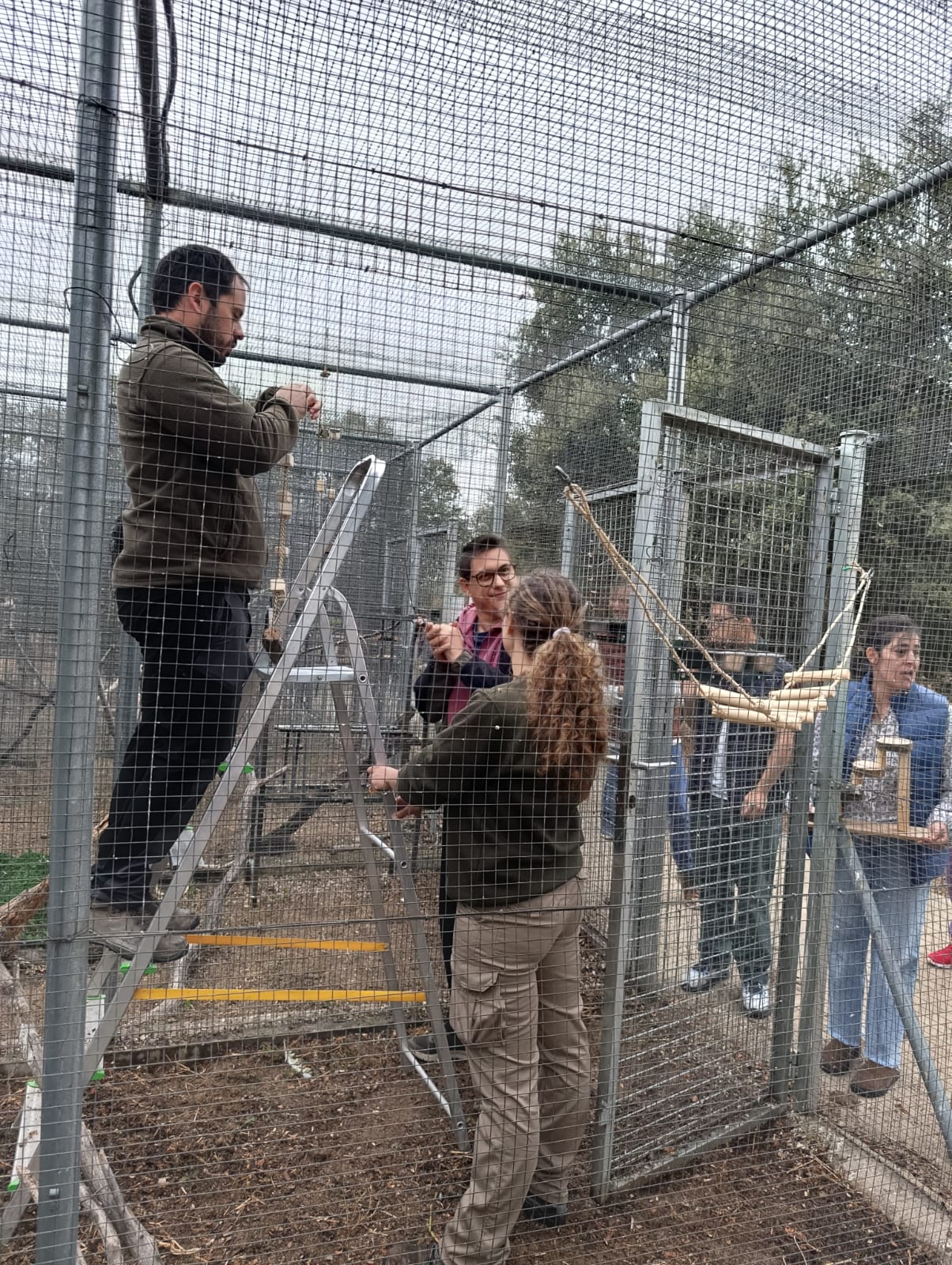 Los participantes han elaborado con sus propias manos columpios, escaleras y un puente de madera, pensados para las jaulas donde conviven loros, cotorras y otras especies que se encuentran en proceso de rehabilitación. Estos elementos no solo aportan entretenimiento, sino que también favorecen el bienestar físico y emocional de las aves durante su estancia en el centro.