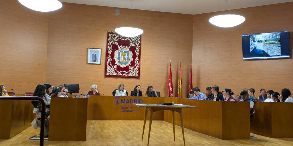 El jueves 5 de marzo, Paula, Manuel, Lucía, Yojan y Manuel participaron en la Junta Municipal de Chamartín, dentro del pleno del distrito, junto a representantes de otros centros educativos. Con esta participación, nuestro colegio suma ya tres años consecutivos asistiendo a este encuentro, en el que los jóvenes pueden presentar directamente a los responsables municipales, propuestas de mejora para su entorno.