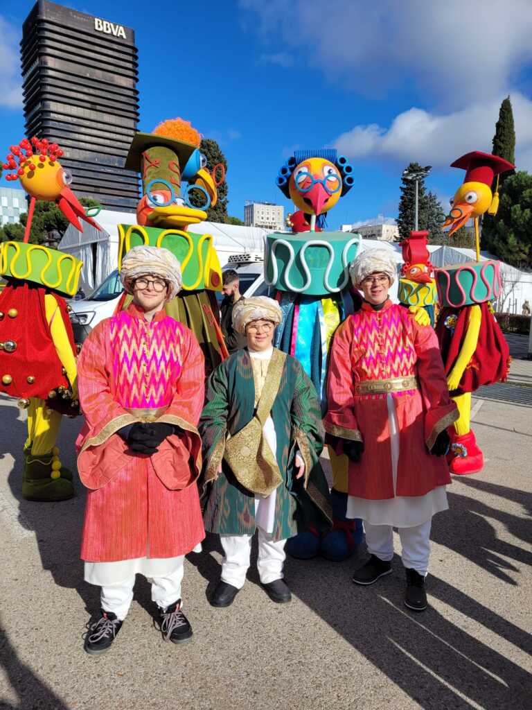 La noche del 5 de enero volvió a teñirse de magia en las calles de Madrid, donde miles de familias esperaban con ilusión la llegada de los Reyes Magos. Este año, la Cabalgata organizada por el Ayuntamiento tuvo un brillo especial gracias a la participación de cuatro jóvenes de Down Madrid, que se sumaron al desfile como ayudantes de los emisarios reales.