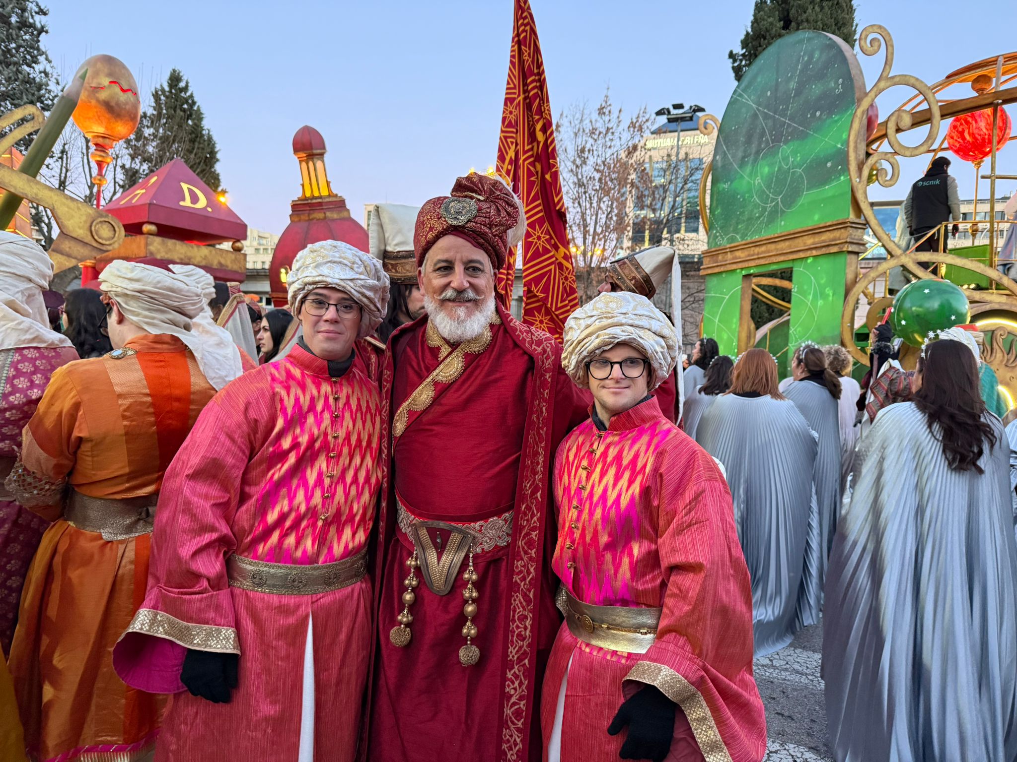 La noche del 5 de enero volvió a teñirse de magia en las calles de Madrid, donde miles de familias esperaban con ilusión la llegada de los Reyes Magos. Este año, la Cabalgata organizada por el Ayuntamiento tuvo un brillo especial gracias a la participación de cuatro jóvenes de Down Madrid, que se sumaron al desfile como ayudantes de los emisarios reales.