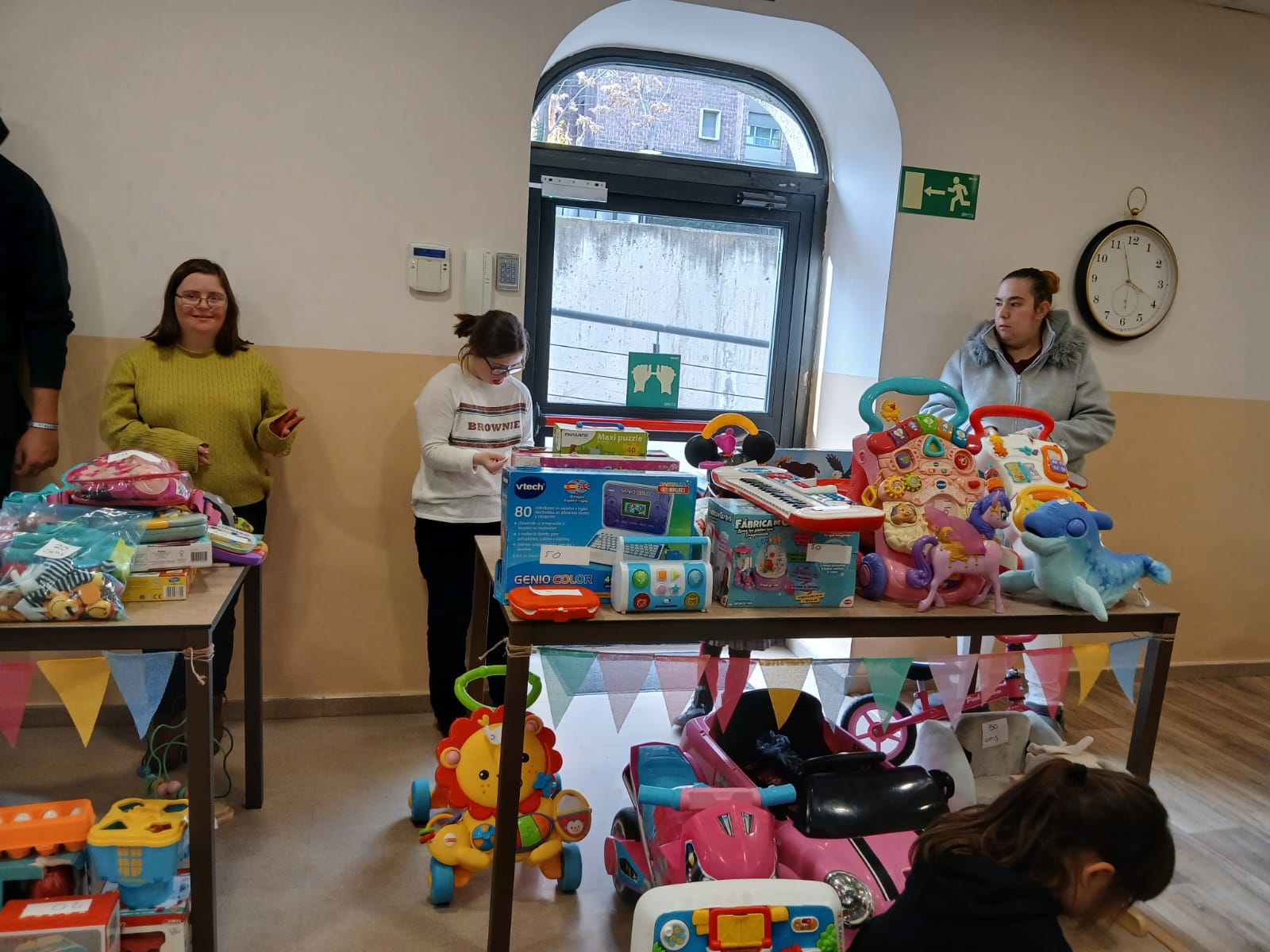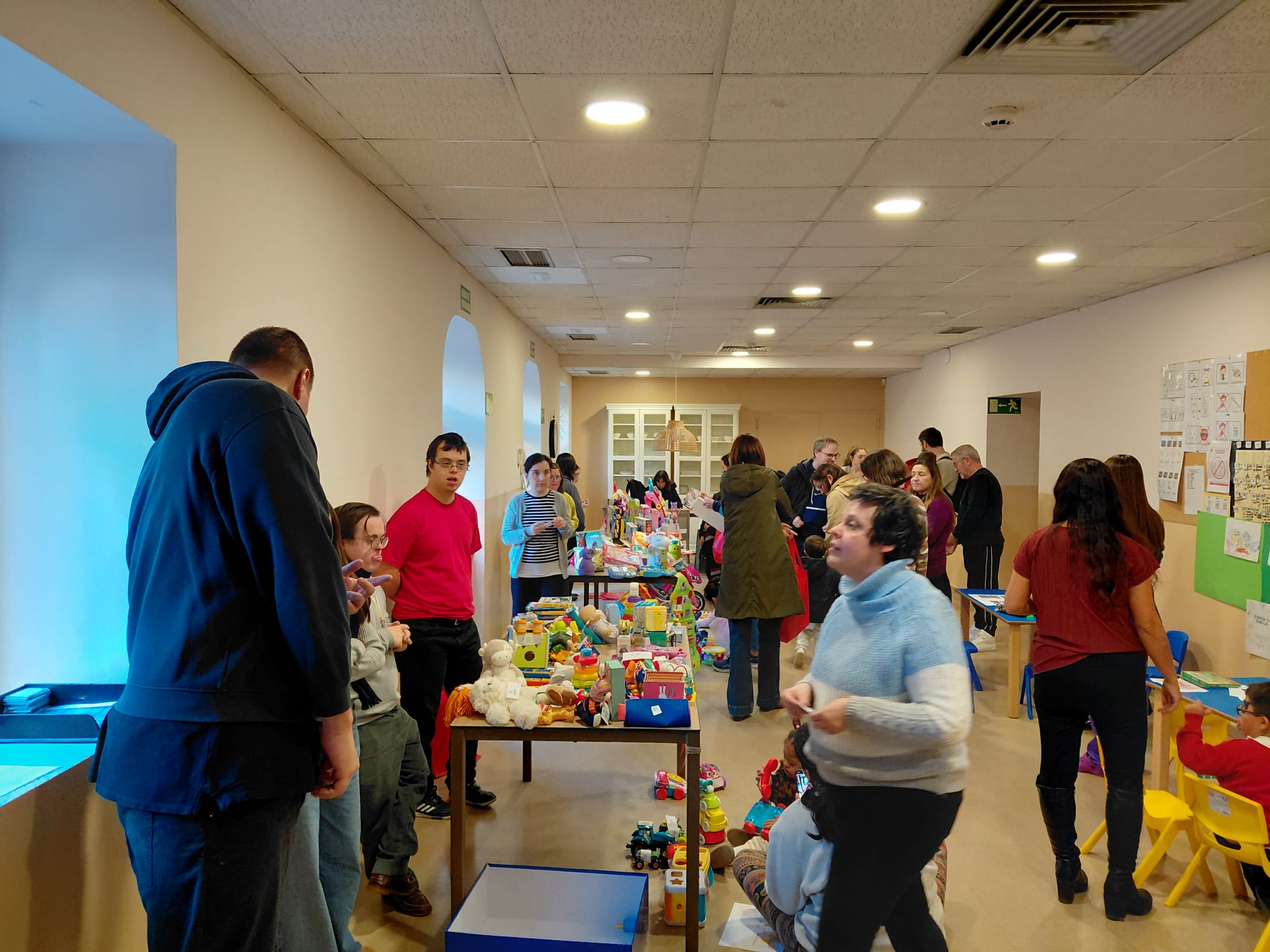 La recogida de juguetes se realizó en días previos en la sede de Caídos de Down Madrid, donde los participantes del Servicio de Empleo se encargaron de recibirlos y asignarles un valor mediante vales de intercambio. Estos vales permitieron que, durante la jornada del trueque, las familias pudieran escoger entre una amplia variedad de juguetes expuestos, garantizando que cada niño encontrara algo de su interés.
